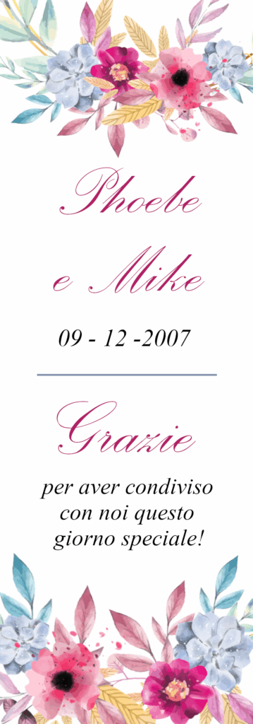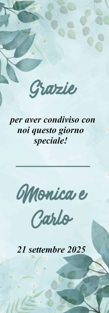 Alternativa ai classici biglietti di ringraziamento, i nostri segnalibri possono essere inclusi nella bomboniera o nella gift bag, oppure come segnaposto accompagnato dalla molletta fermacarte, come ricordo dell’evento per i vostri invitati.